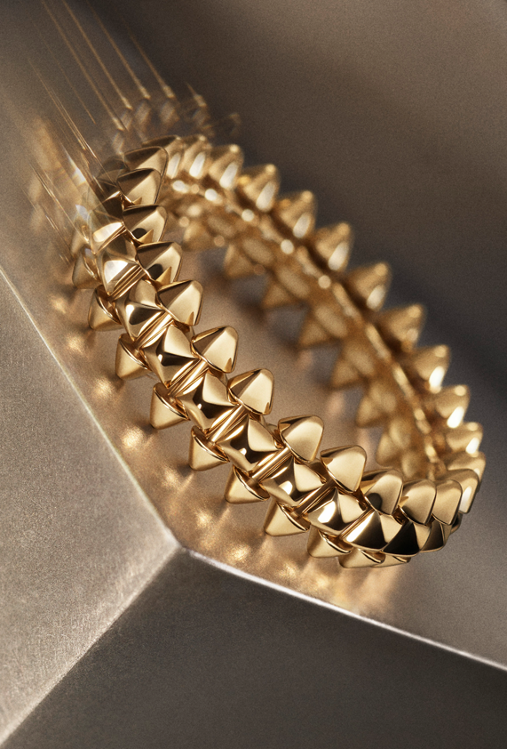 此前以玫瑰金打造的项链和手链,如今以黄金呈现。全新珠宝造型丰盈饱满,部分作品推出双排款式。